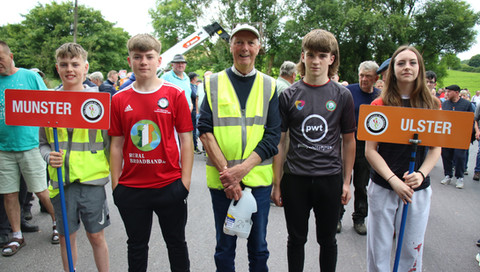 Under 14 All-Ireland Finalists Ross O'Brien & Jack O'Reilly with Fionan Twohig, reff Sean Kenneally & Sophie Murphy